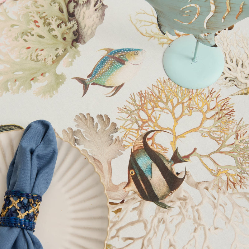 Set 4 Individuales antimanchas Asia azul + Camino de mesa Olimpia azul