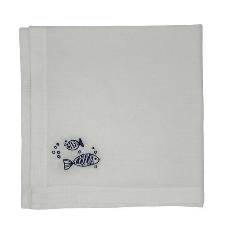 S/. 45.00Precio unitario /AgotadoServilleta lino blanco bordado Peces