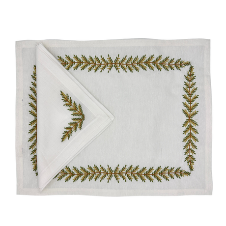 - Servilleta lino blanco bordado hojas S/. 45.00Precio unitario /Agotado