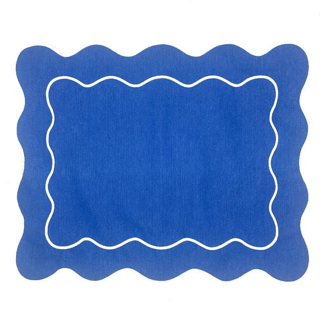 Individual antimanchas rectangular bordado ondas azul y blanco