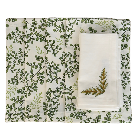 S/. 152.00S/. 169.00Precio unitario /AgotadoSet 4 Individuales antimanchas Helechos + Camino Helechos + 4 Servilletas lino bordado Hojas