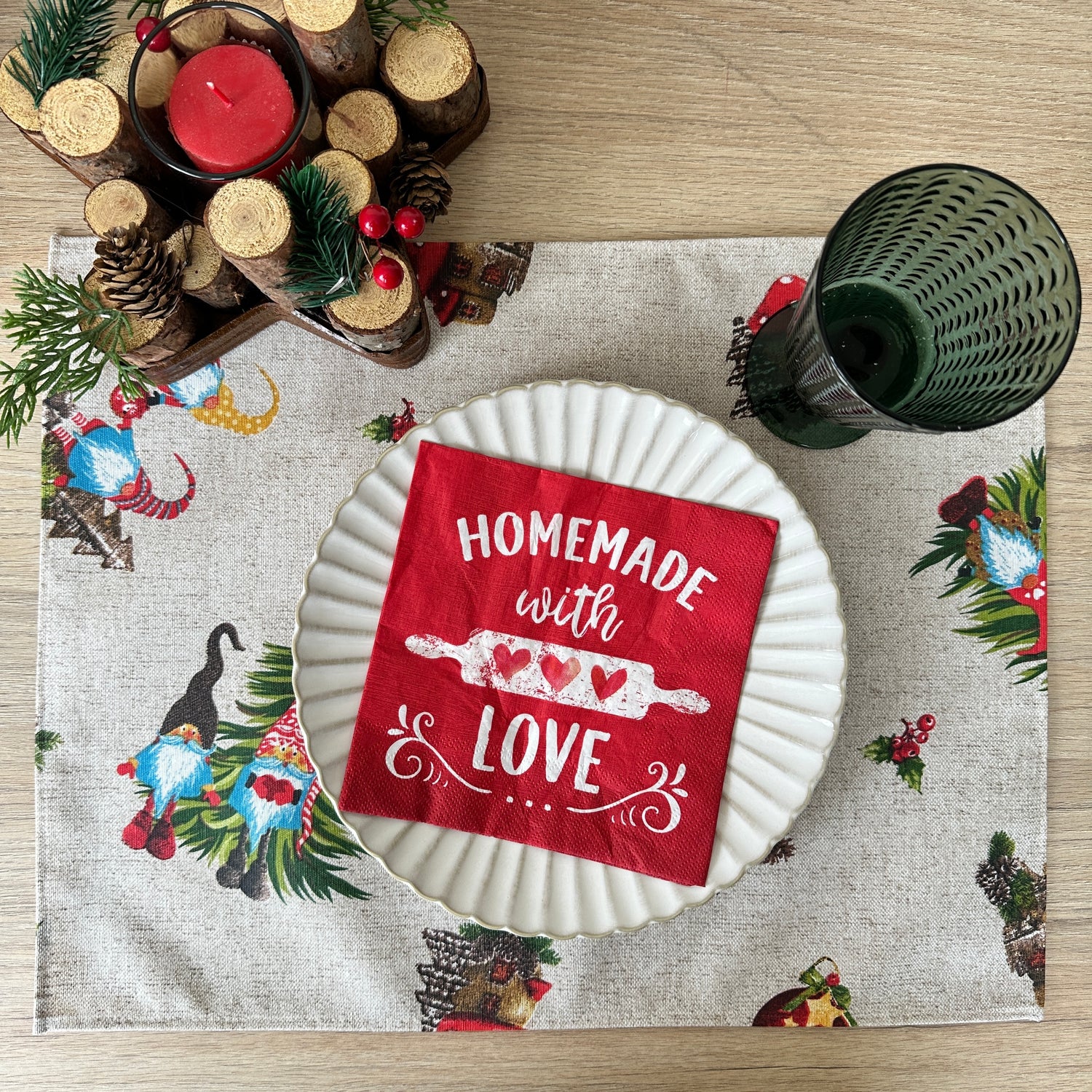 Set de 4 individuales color beige con divertido diseño navideño.