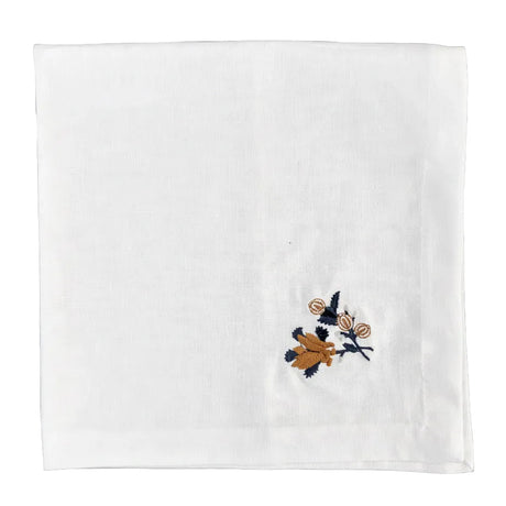 Servilleta lino blanco bordado Flor azul