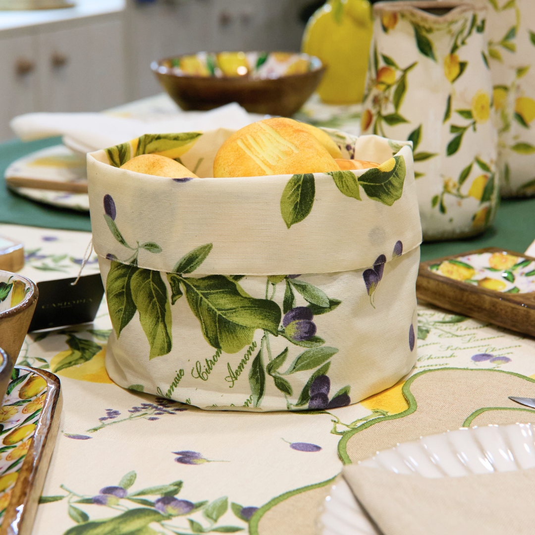 Práctica panera confeccionada en tela antimanchas mezcla de algodón (50%) y poliester (50%), con un revestimiento de resina que hace que no se manche, limpiándose fácil con un trapito húmedo.