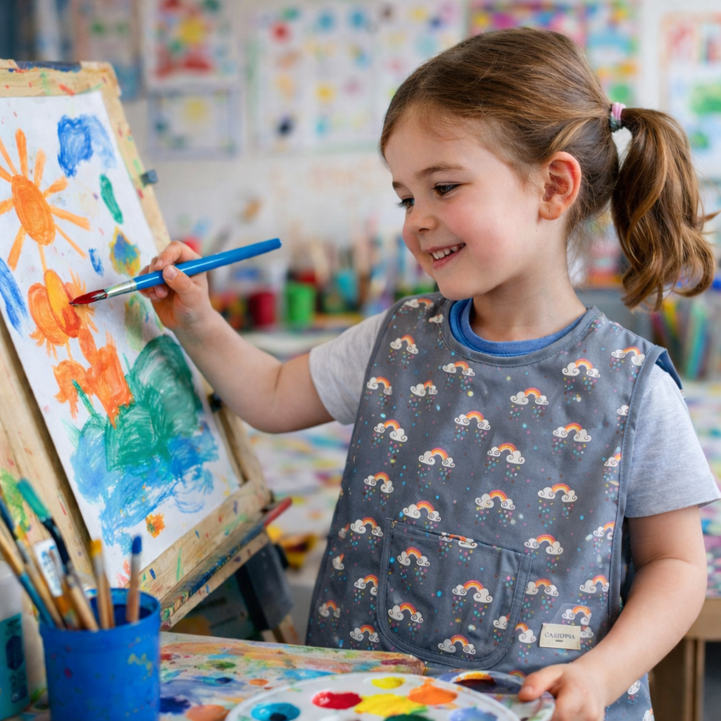 La solución más práctica y divertida para que los más pequeños disfruten en sus actividades artísticas y culinarias, sin preocuparse por mancharse ni mojarse!! Con los mandiles escolares Casiopia, ellos se relajan, y tú también!!