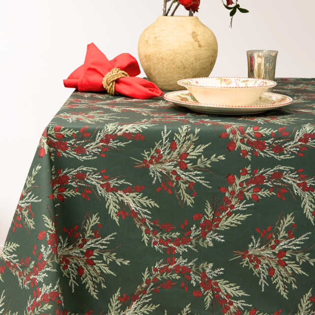 Elegante diseño navideño en tonos verdes para celebrar y disfrutar los momentos más especiales alrededor de tu mesa.