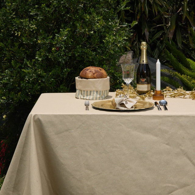 Viste tu mesa de Navidad con este precioso mantel en tonos beige y dorado.