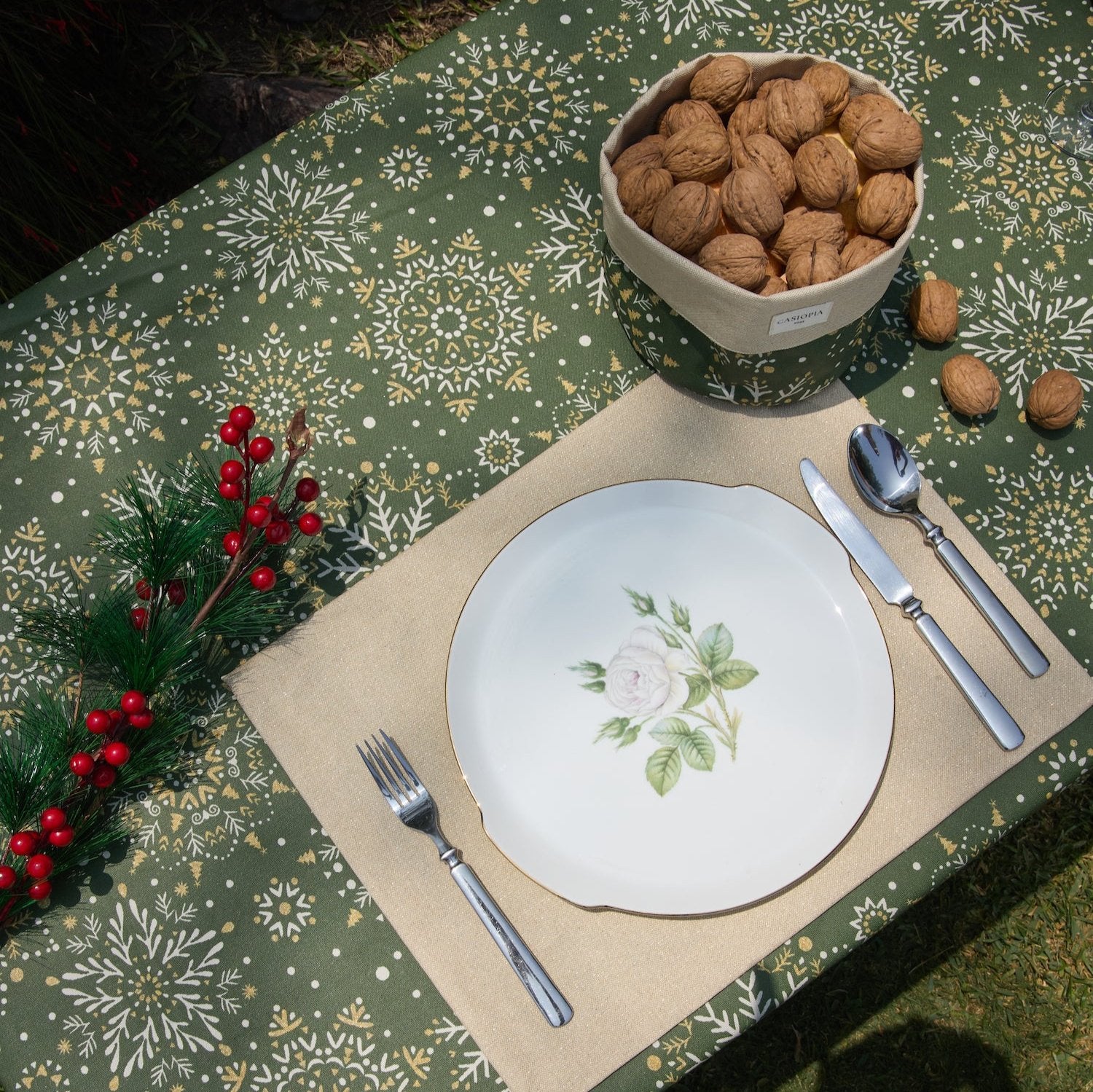 Elegante diseño navideño en tonos verdes para celebrar y disfrutar los momentos más especiales alrededor de tu mesa.