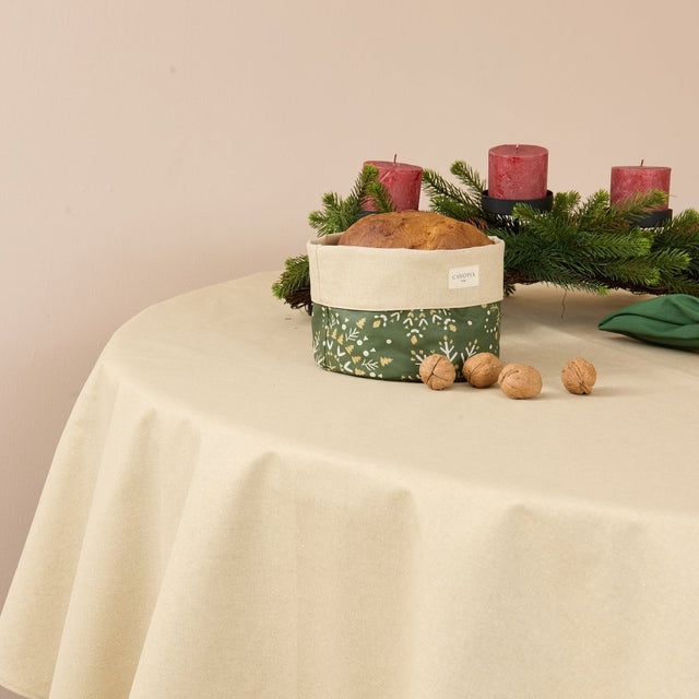 Viste tu mesa de Navidad con este precioso mantel en tonos crudo y dorado.