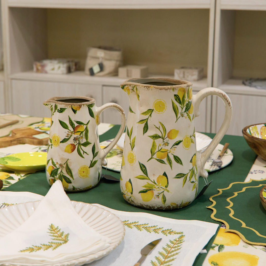 Jarra con estilo vintage elaborada en cerámica con una preciosa decoración de limones en pintura acrílica. Perfecta para servir bebidas o decorar espacios.