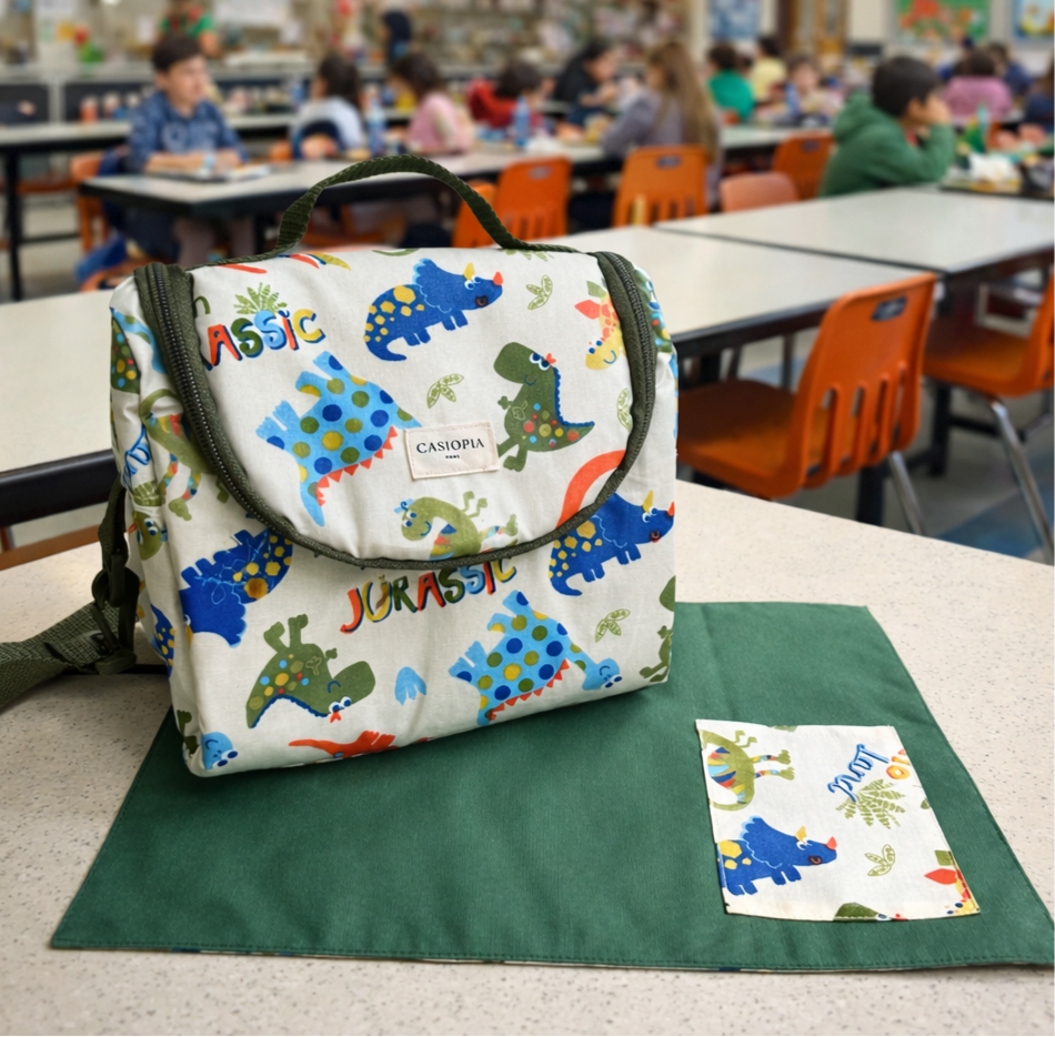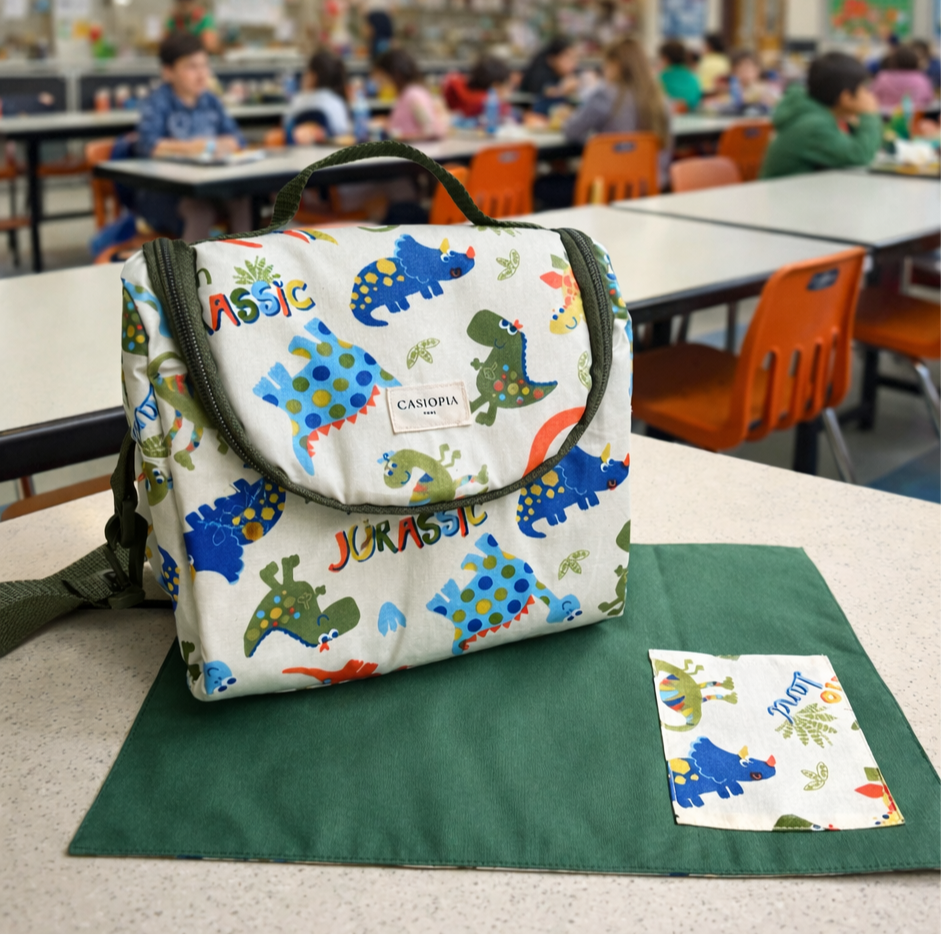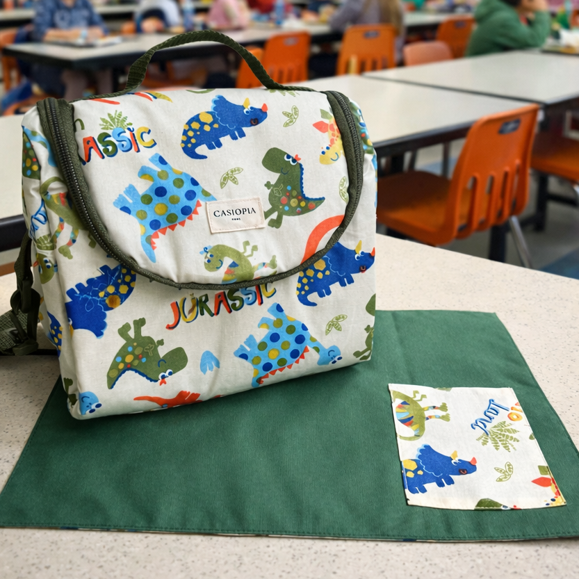 Lonchera Jurassic con individual a juego.