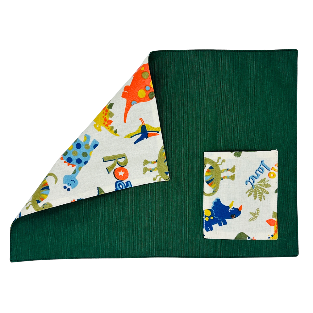 - Individual antimanchas reversible con práctico bolsillo, tamaño 25x35 cm.