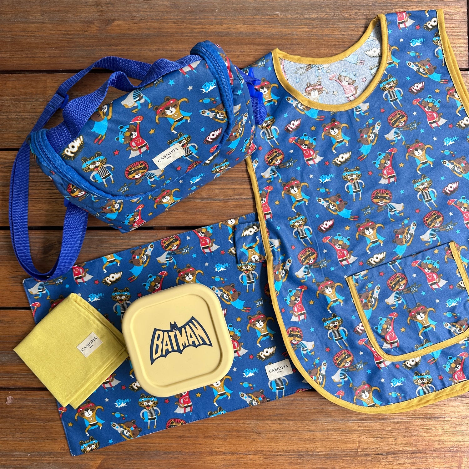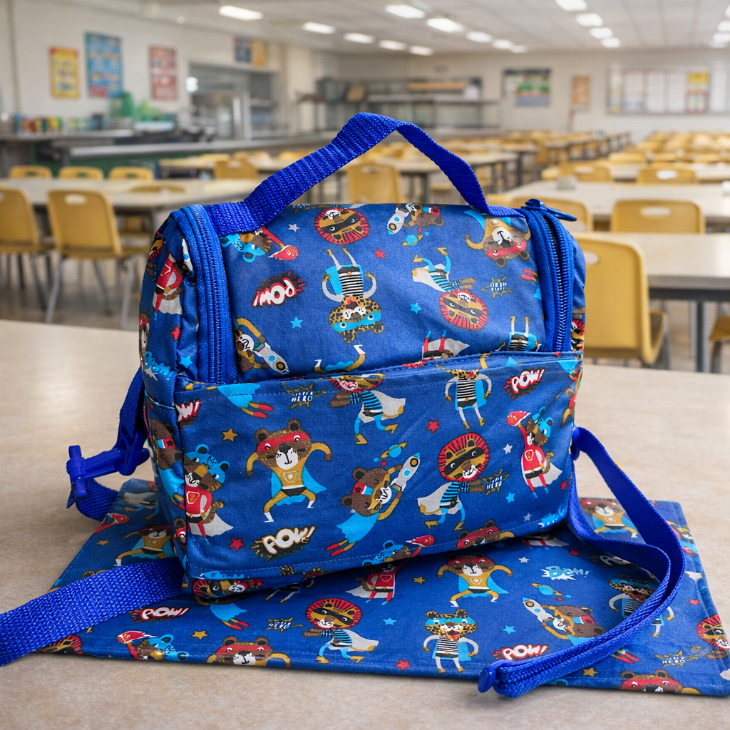 Lonchera Superhéroes con individual a juego.
