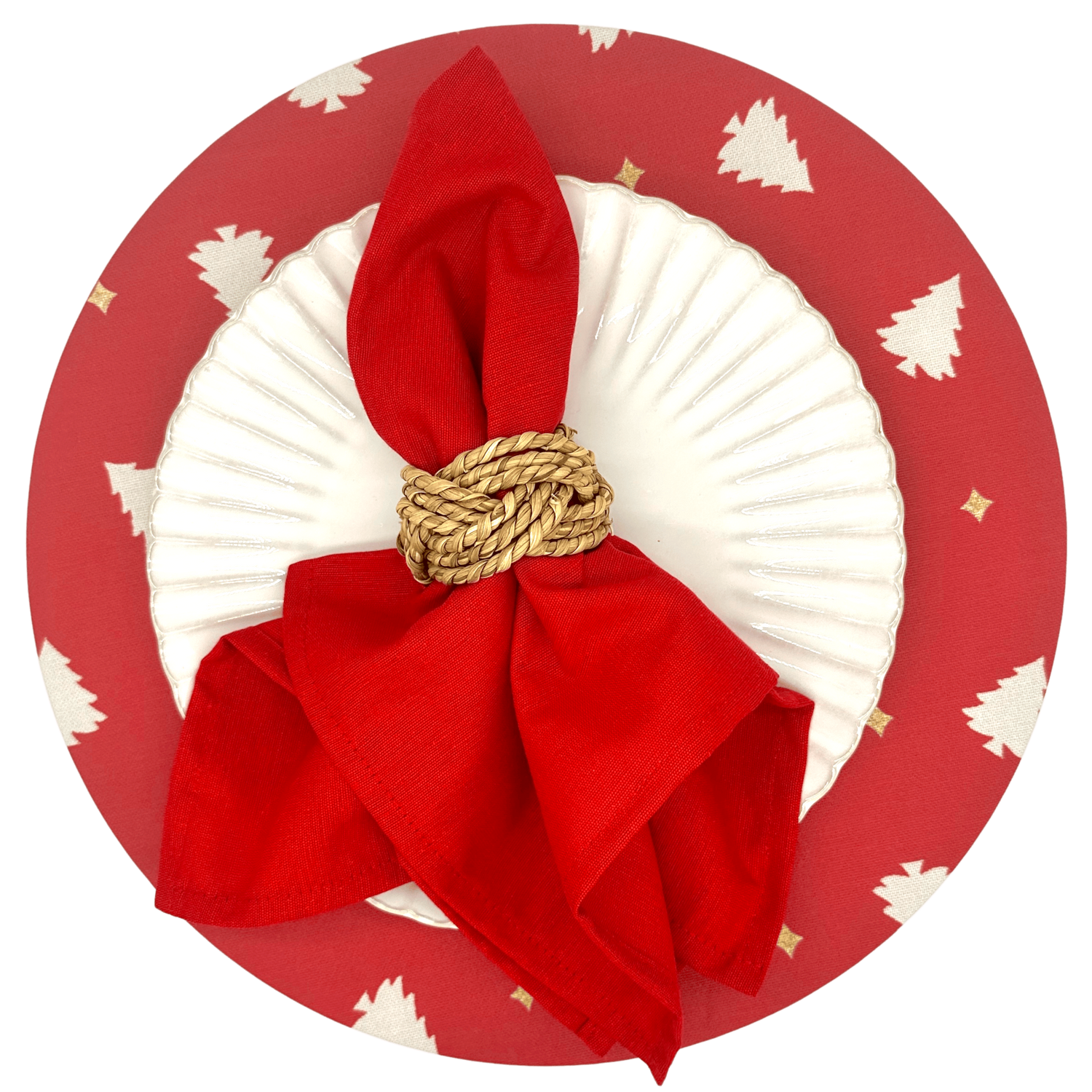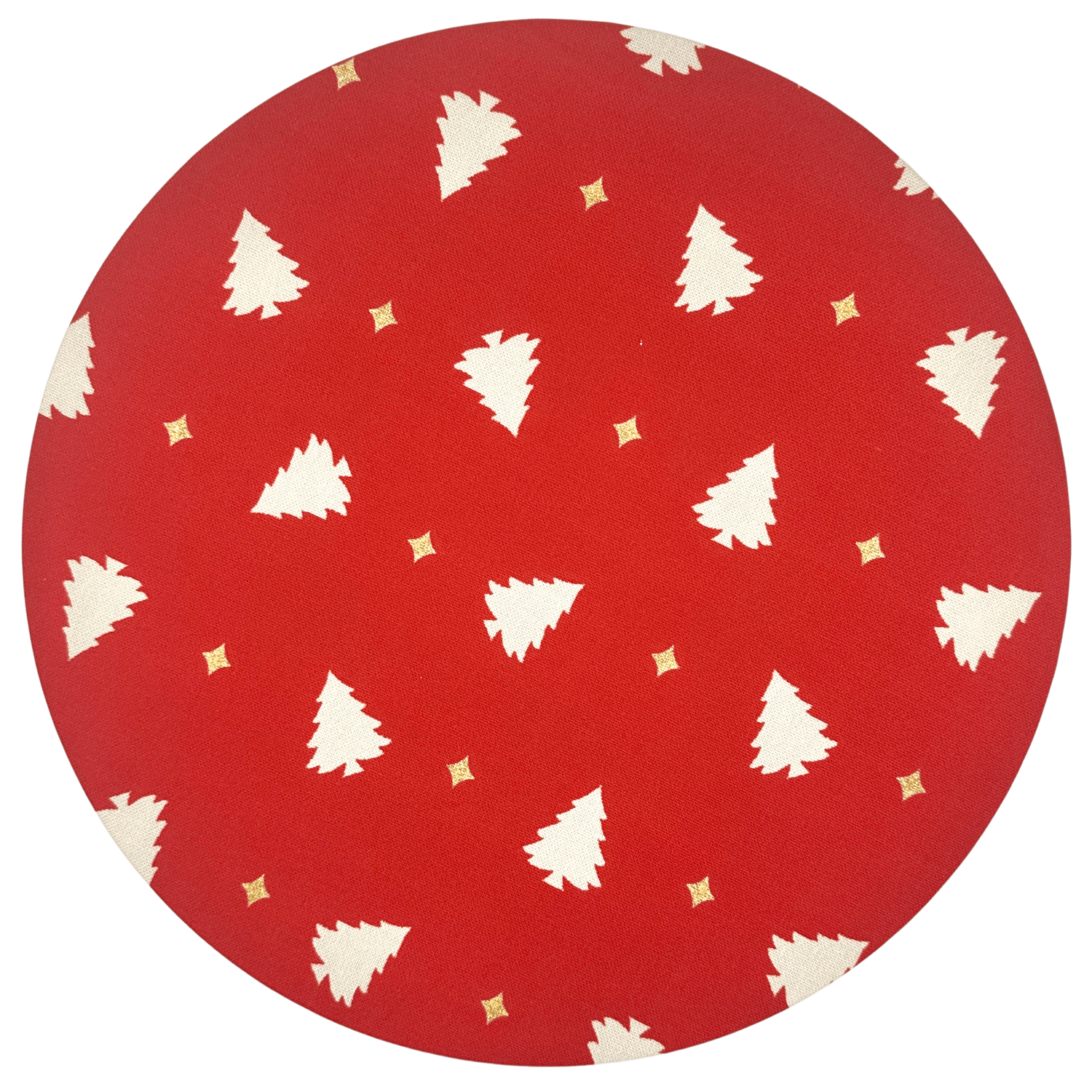 Bajoplato de tela antimanchas confeccionado en tela de estampado navideño 90 % algodón y 10% poliéster, y una base de madera de trupan lo que la hace resistente y duradera.