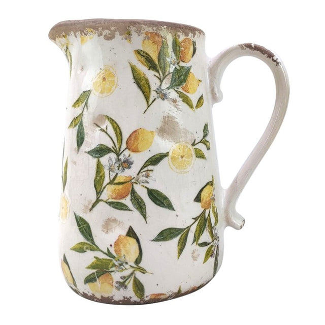 Jarra con estilo vintage elaborada en cerámica con una preciosa decoración de limones en pintura acrílica. Perfecta para servir bebidas o decorar espacios.