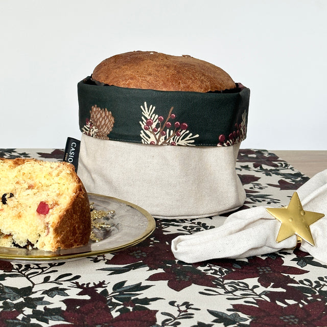 Práctica panera confeccionada en tela antimanchas mezcla de algodón (80%) y lino (20%), con un revestimiento de resina que hace que no se manche, limpiándose fácil con un trapito húmedo.