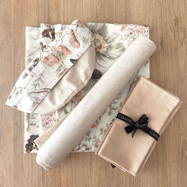 Set 4 Individuales antimanchas Natura+ Camino beige + Panera Natura + Servilletas beige