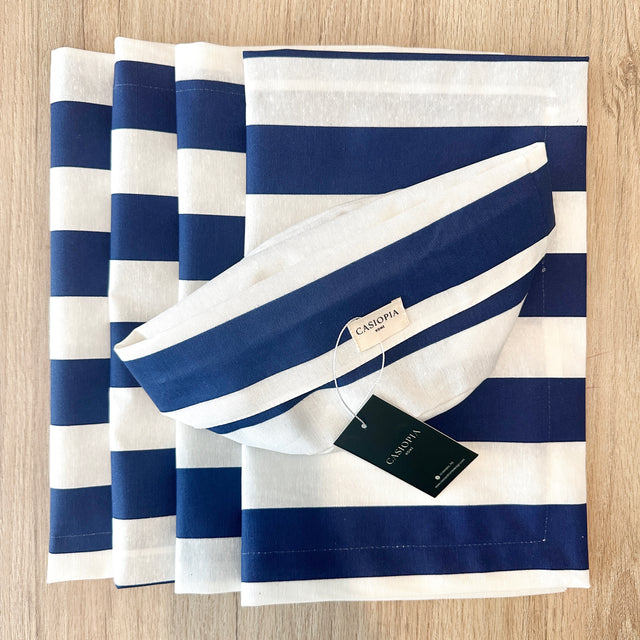 Set 4 Individuales antimanchas Rayas marino+ Panera Rayas marino