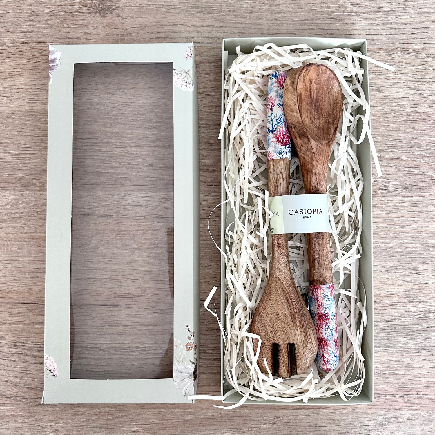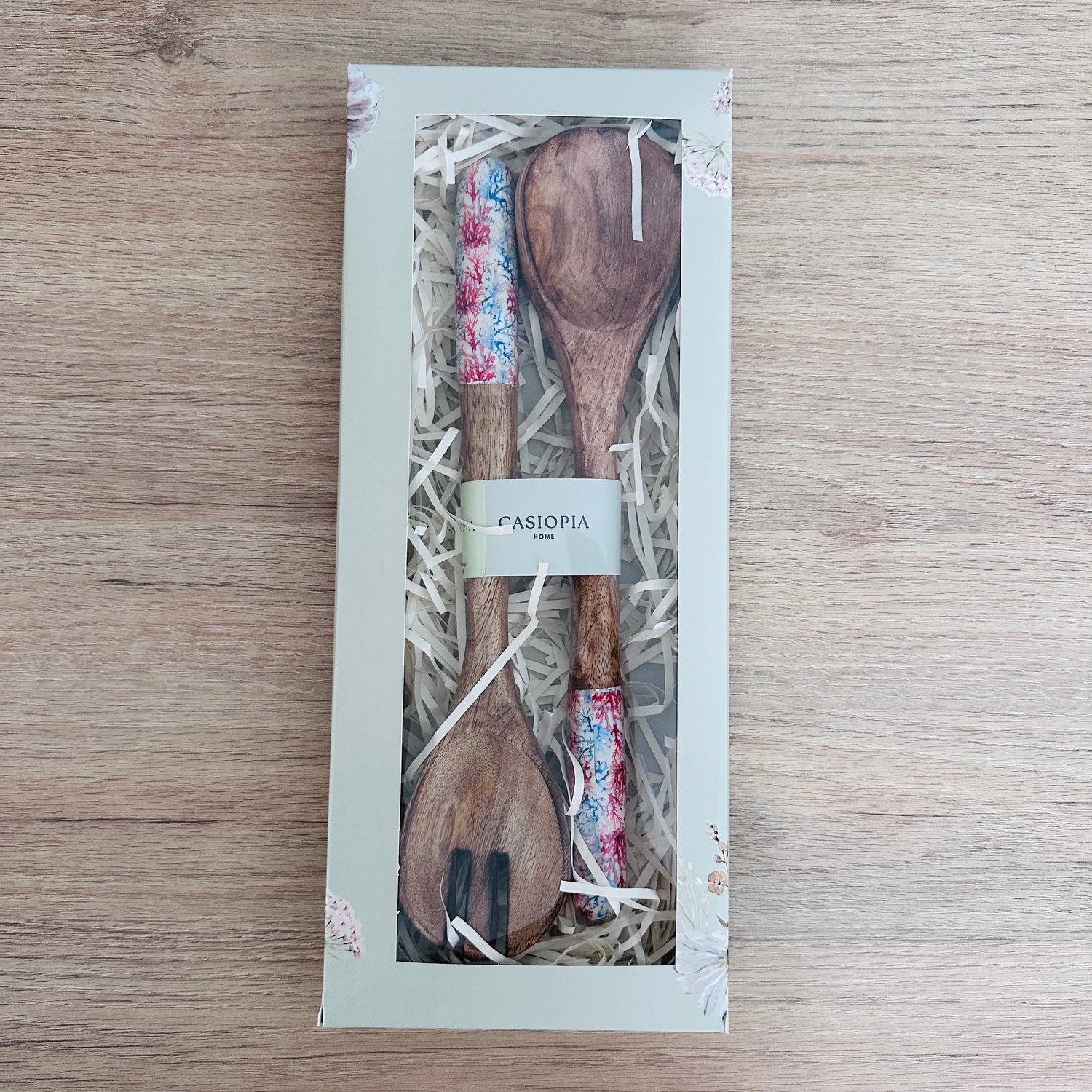 Ensaladera en madera de mango lacada, con estampado de corales.
